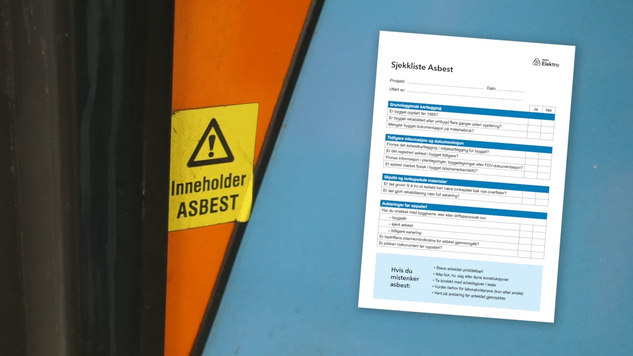 I 2026 er regelverk for å jobbe med asbest endret. For elektrobransjen har det blant annet blitt en tydeligere plikt til å kartlegge asbest før arbeidet starter i eldre bygg. Opplæring er fortsatt et krav som myndighetene vektlegger. Les gjerne mer på Arbeidstilsynet sine sider.