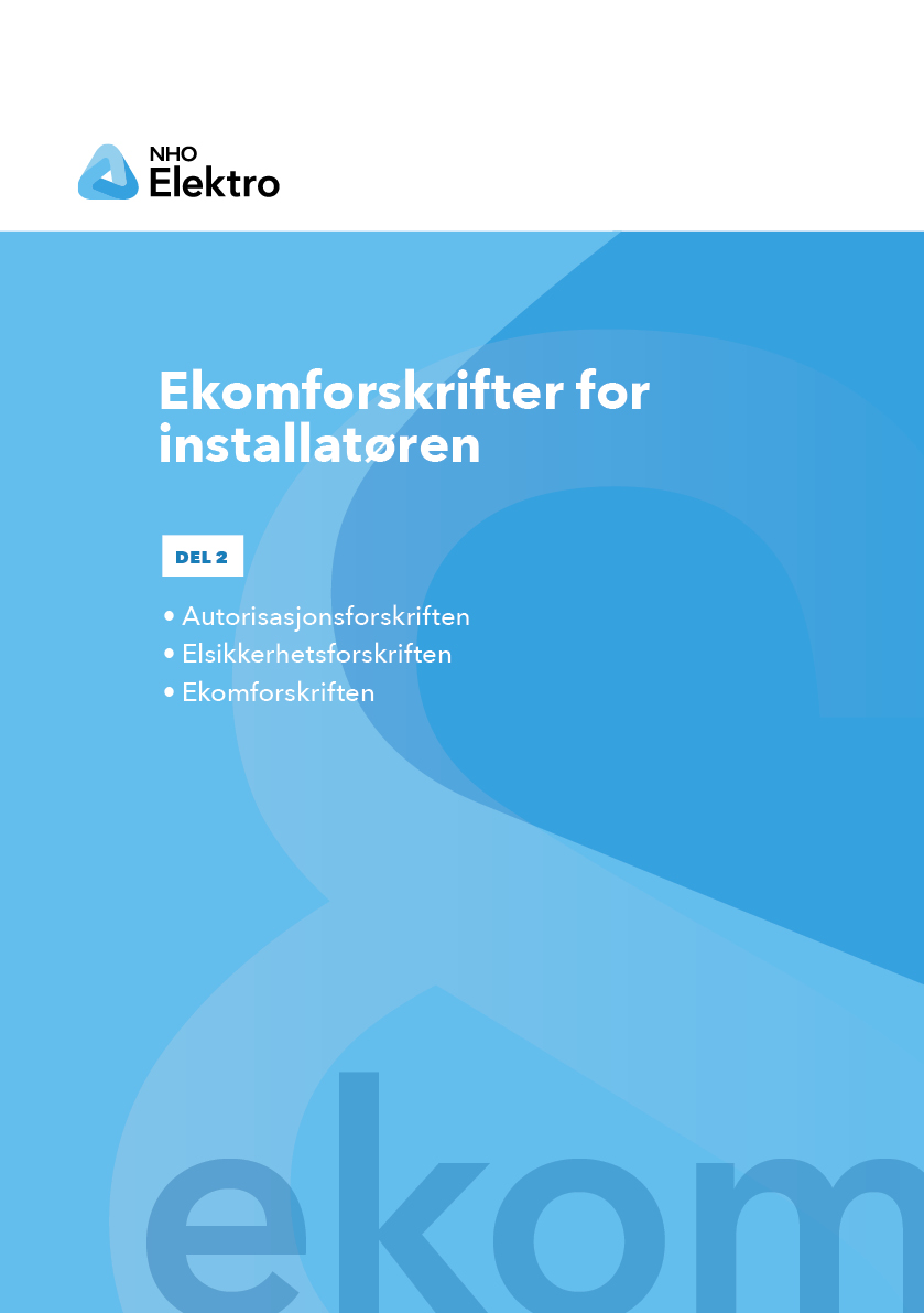 Ekommyndighetene (SD og Nkom) har i størrelsesorden 30 forskrifter. Alle er selvfølgelig like viktige, men NHO Elektro har tatt ut de som er mest relevant for installatørbransjen. Vi har valgt å publisere disse i 2 hefter og nå er del 2 oppdatert med gjeldende forskrifter. Del 2 inneholder ekom-, elsikkerhet- og autorisasjonsforskriftene.
