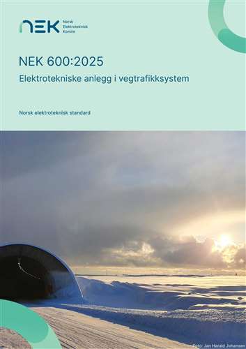 NEK 600:2025 Elektrotekniske anlegg i vegtrafikksystem, stiller krav til kvalitet, funksjon og elsikkerhet ved bestilling, prosjektering, installasjon, verifikasjon og dokumentasjon, samt drift og vedlikehold av elektrotekniske anlegg i vegsektoren.