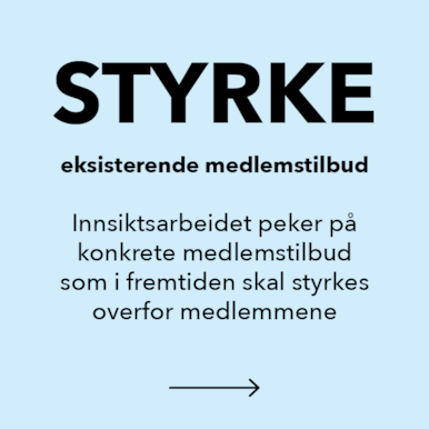 Vi skal STYRKE det eksisterende medlemstilbudet, UTVIDE medlemsporteføljen og SIKRE ny og nok kompetanse.