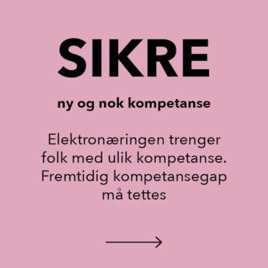 Elektronæringen trenger kompetanse på to fronter; nok folk til å levere på dagens behov og ny kompetanse for å levere på det som venter i fremtiden. Selv om næringen opplever god tilgang på studenter og lærlinger, er det utfordrende å tette kompetansegapet mellom det markedet etterspør og tilbudet som finnes ved utdanningsinstitusjonene i dag.
